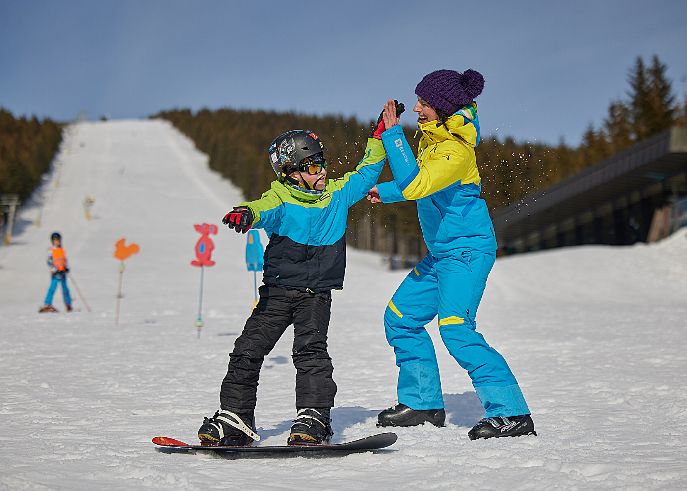 Profesionální instruktoři pro Vás vyberou takovou formu výuky, která Vám bude nejvíce vyhovovat. Naučíte se jezdit na lyžích, snowboardu nebo běžkách, pokud nám svěříte své nejmenší lyžaře, brzy budou jezdit s Vámi!